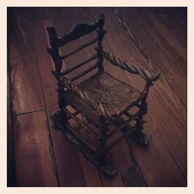 Made a plaster cast of a clay sculpture, then stained it with coffee and painted it with watercolors.
